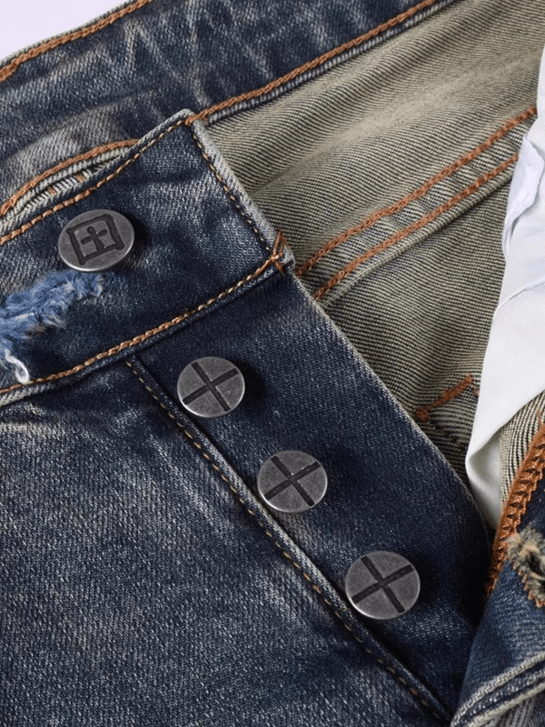 Retro Blue Ripped Washed Jeans